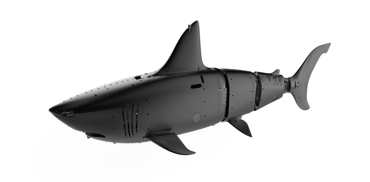 ROBO-SHARK采用鲨鱼为原型,以三关节仿生尾鳍取代传统螺旋桨推进器,推进效率高达80%,此外最高航速可达8~10节,远优于其它仿生类潜航器潜水器约2节的平均速度。