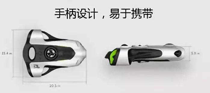 这款BW Space 水下跟拍无人机尺寸大小为20.5 * 15.4 * 5.5,重量为4.6KG 10磅,推力由三个螺旋桨(2 水平 + 1 垂直)提供,最大速度 2 m/s(6.6 英尺)。在设计上更采用符合人体工学的手柄设计,手感舒适,易于携带。为了增加功能,还提供了蓝牙控制器,以及3类型系绳长度分别为50米/ 100米 /150米。