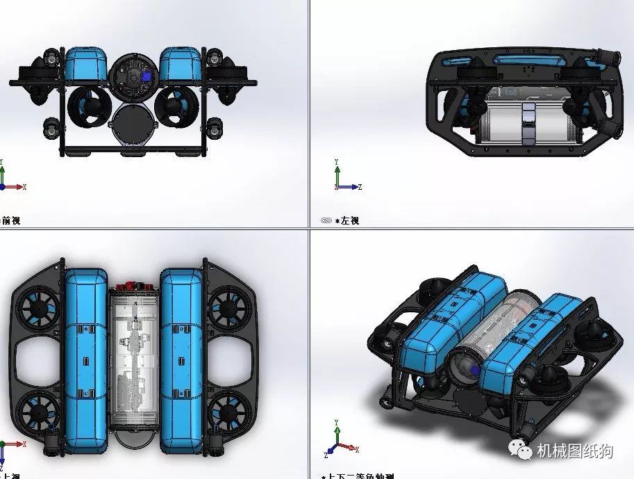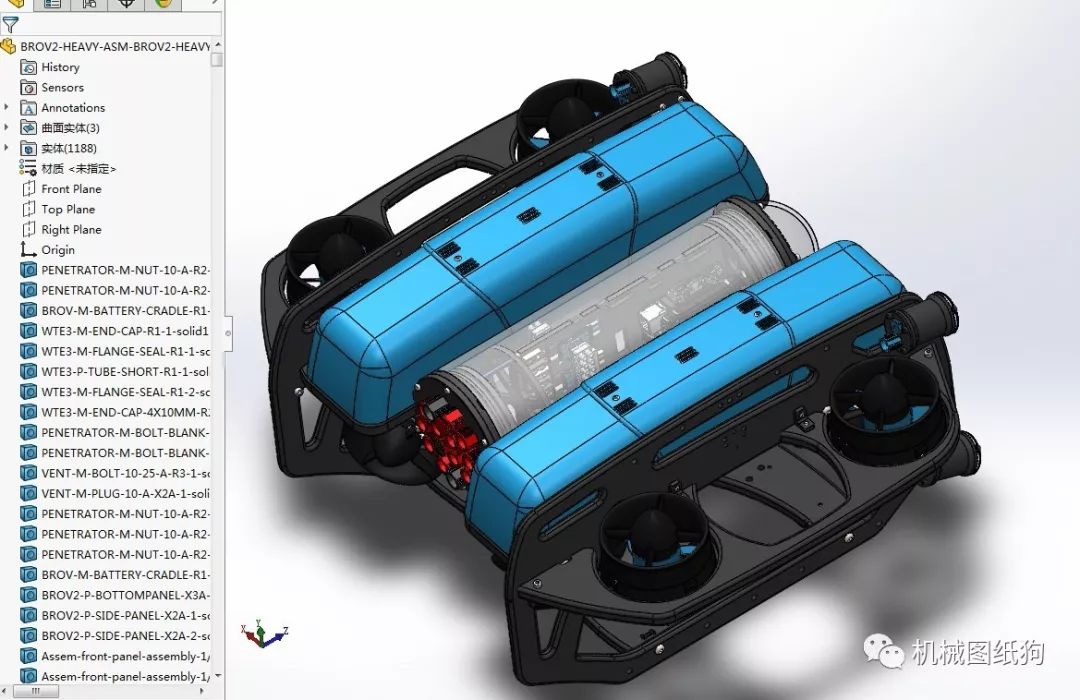 【机器人】重型改装BlueROV2水下机器人3D建模图纸 Solidworks设计 IGS STEP