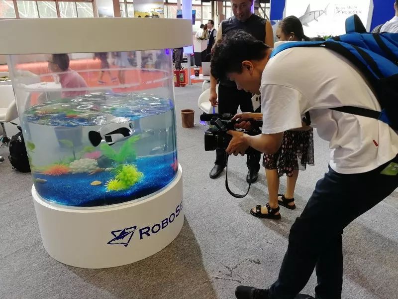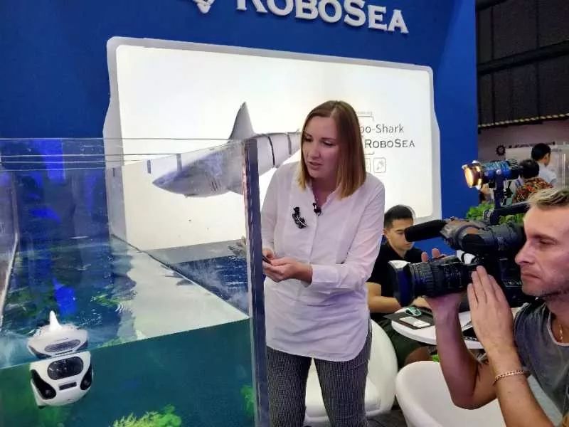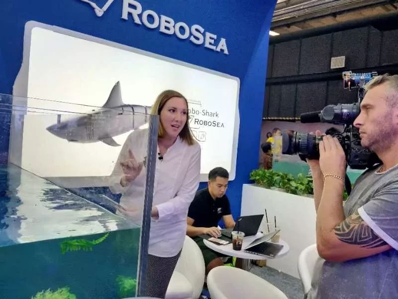 新华社记者采访报道智能仿生鲨鱼深海潜航器ROBO-SHARK。