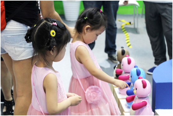 东方金钰展示的吉特熊空净机器人是现场孩子们的最爱。他们在产品最初的定义阶段就明确了“只为儿童AI健康”的产品理念,为儿童带来更好的教育、娱乐、陪伴的的同时,更带给儿童更好的生活环境空气质量,全方位解决家长最为关注的儿童健康成长问题。