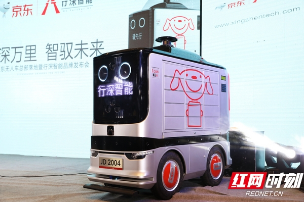 8月31日,“长沙智造”——行深智能科技有限公司研发的京东配送机器人亮相。
