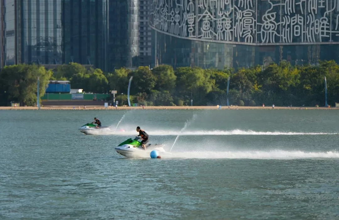 展演活动之后,合肥市公安局水警业务技能竞赛开始。竞赛包括水上摩托竞速、冲锋舟水上救生、武装泅渡等多个项目。