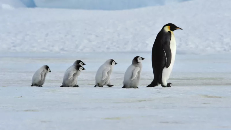 据说企鹅生命中约 7 成时间都在水中渡过,并可以每秒 5.5 米的速度游动,水下场景便成为戏中的一大亮点。制作团队以 4K 无人机深潜至水深 100 米下,只有零下 2°C 的透明水域,捕捉企鹅游动画面,另又以无人机作俯瞰拍摄,看着一排又一排小企鹅屁颠屁颠地移动非常治愈。