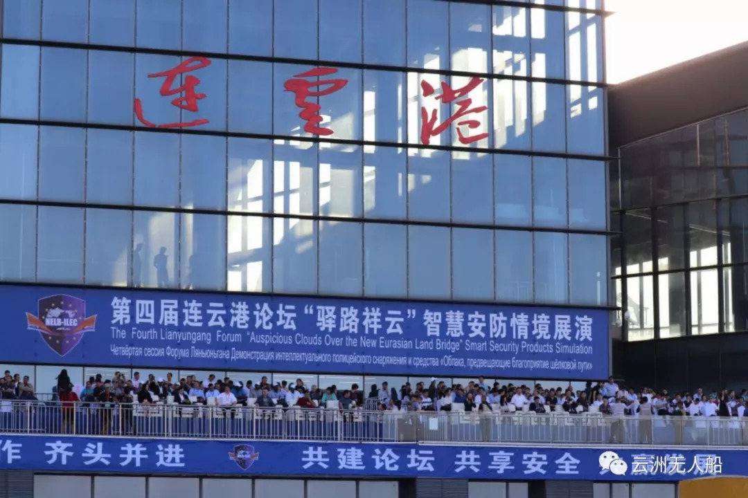 9月11日下午,作为国家公安部主办的第四届“新亚欧大陆桥安全走廊国际执法合作论坛”的重要活动之一,全球首次无人艇反走私演练——“驿路祥云”智慧安防演练在连云港国际客运码头水域举行,演练中云洲安防无人艇担纲主力协助警察成功抓捕“走私犯”,受到来自29个国家与4个国际组织的安全官员的关注与肯定。