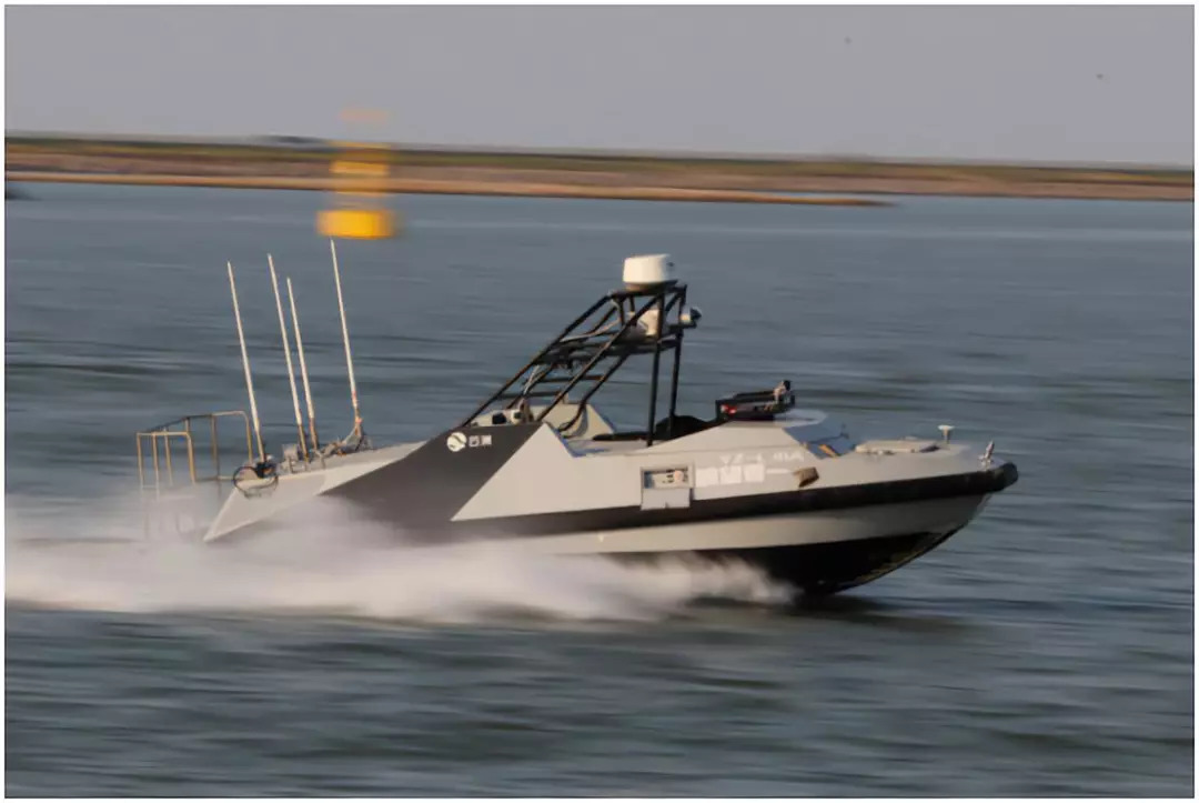 参加演练的云洲L30“瞭望者”高速警戒对抗无人艇在飞速航行。