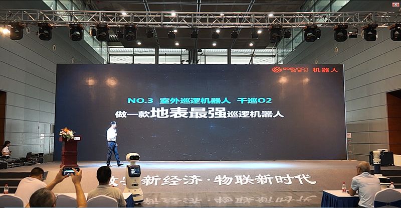 古总致词后,迎来了本次发布会的高潮——高新兴巡逻机器人2.0新品发布,在现场,高新兴机器人公司CEO柏林柏总对巡逻机器人进行了专业、形象的发布,让现场观众、媒体更加深刻地感受到了千巡系列独特的优势。