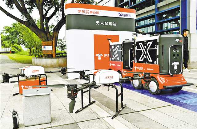 京东无人机、无人车亮相南岸茶园。
