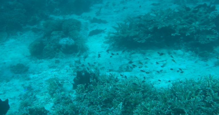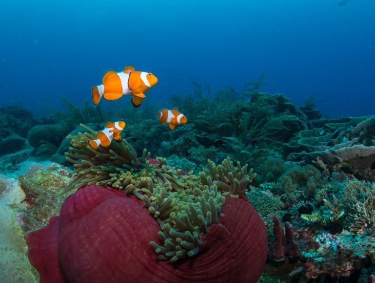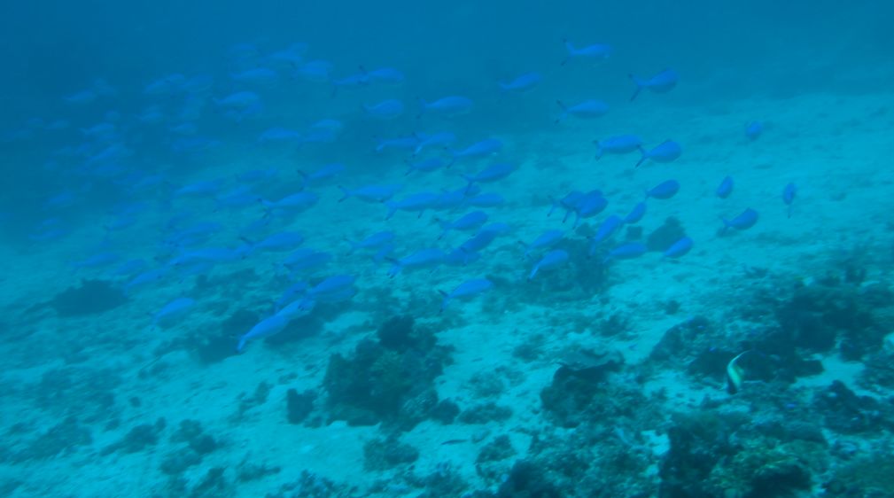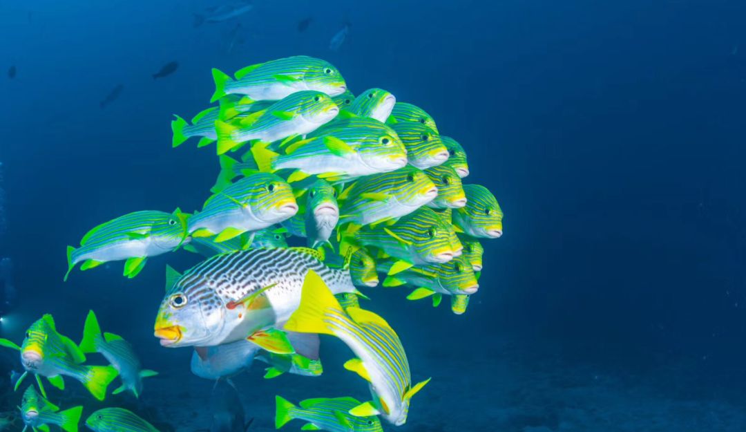 水下的光线的颜色会随深度的增加不断被吸收,一定深度后,水中的颜色就只剩蓝色了。水下拍摄,如果要还原生物和珊瑚的本身颜色,就需要借助人工光源,一切没有打好灯的水下拍摄行动都是无用功。