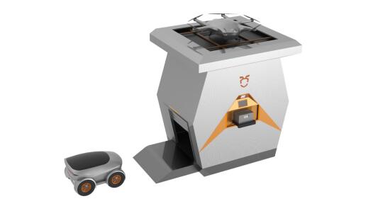 •无人站将外卖/货物从无人车取出,自动分拣后装载到无人机