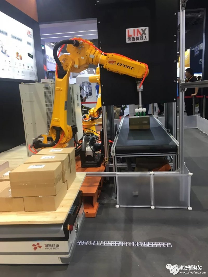在展会现场,迦智科技还通过和共同参展商灵西机器人的合作,向大家展示了复合型机器人的工作场景:只见机械臂将从产线上抓取到的货品,放置在货架上;EMMA200在接收到指令后,准确行驶到该货架旁,轻松实现与货架的自动对接,再按照自行规划的即时线路,将货架搬运到指定工作台,供下一阶段的机械臂抓取使用。而EMMA200在运行过程中,当检测到前方有障碍时,会自动减速、停止或更改行驶路径,避免了不必要的货品损坏。执行完当前任务后,EMMA200也会立即回到等待区或运行到充电桩进行充电。整个过程不用人工干涉,充分体现了迦智科技对准确、高效、灵活的极致追求。