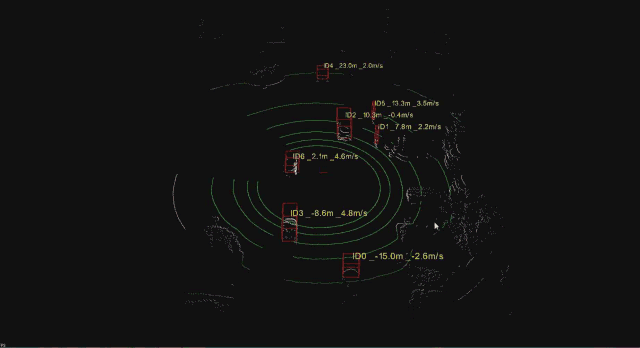 使用一台镭神16线激光雷达,通过对多线雷达点云的处理,可以对周边环境进行检测,得到障碍物ID、中心坐标、速度、大小等信息,客户可根据这些信息在实际中做出决策控制系统。
