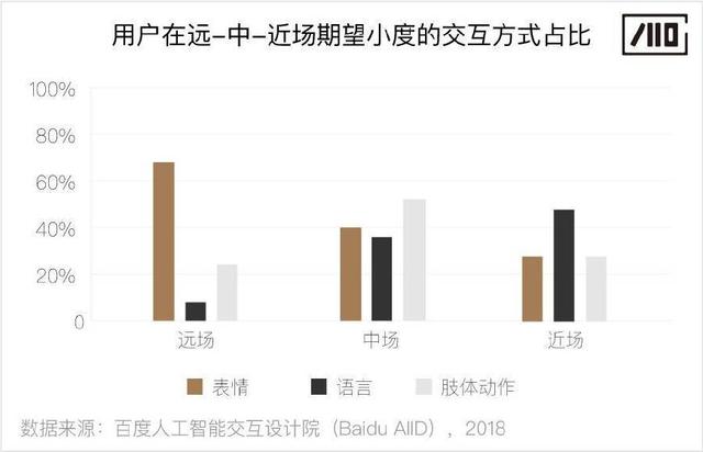 人和机器人交互的距离要求和人际交往距离略有不同,远场距离(2.7m-4.2m)超过了社交距离的远端(3.6m),落在了公众距离的近端。之所以如此,推测与小度机器人本身的特点有关,比如小度身宽1.1m,较之一般人要宽大很多。