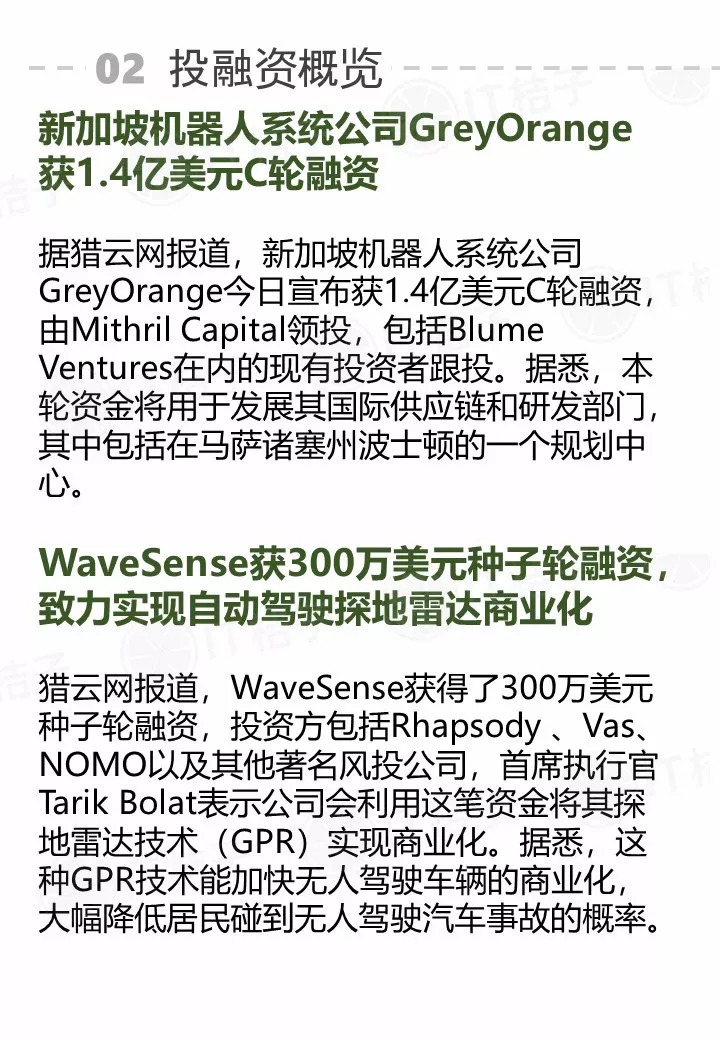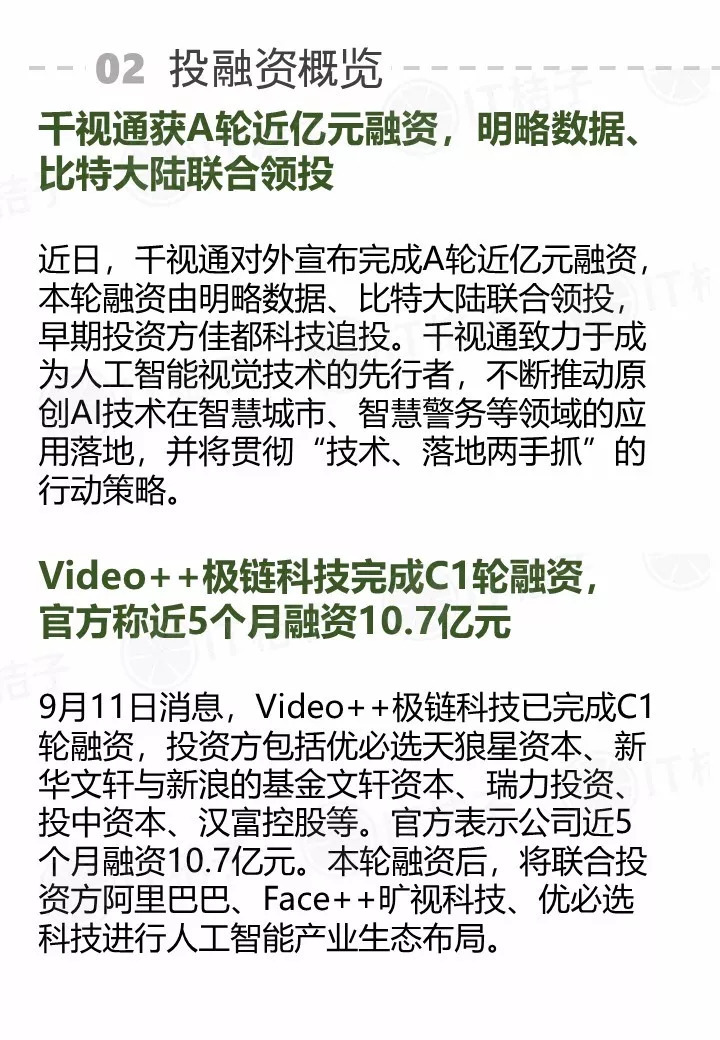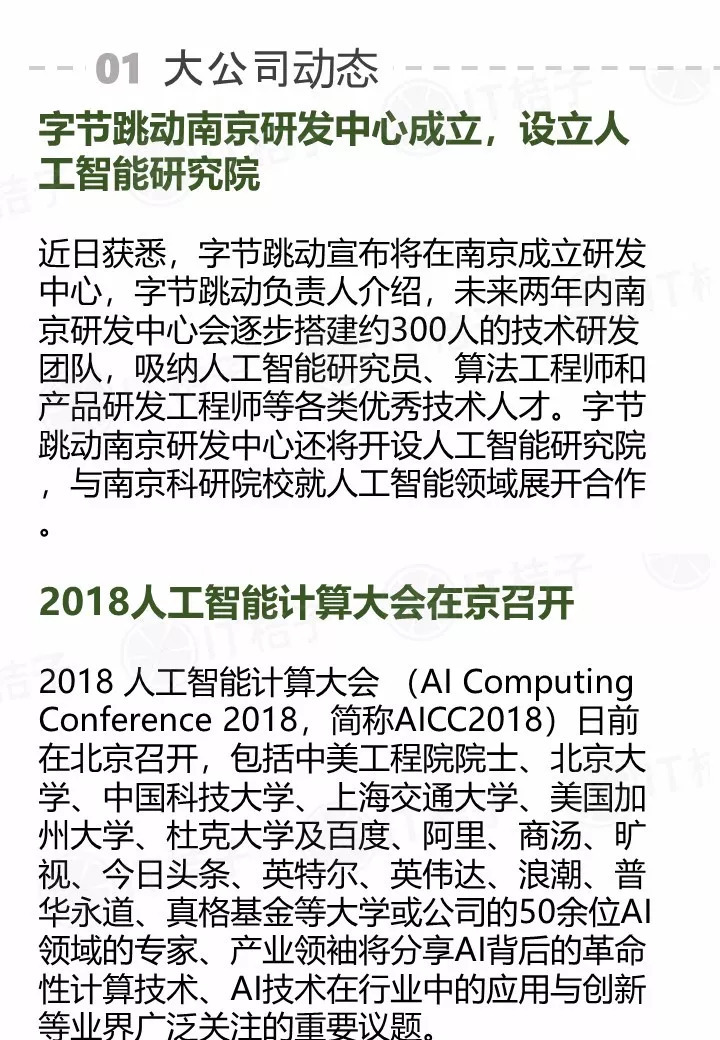 近期,IT 桔子也顺应行业发展热潮推出了人工智能行业周报栏目。周报将从国家政策举措、投融资动向、业内大公司动态、行业热点事件等维度解读人工智能行业最新变化,为人工智能创业投资提供参考。
