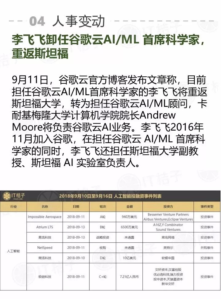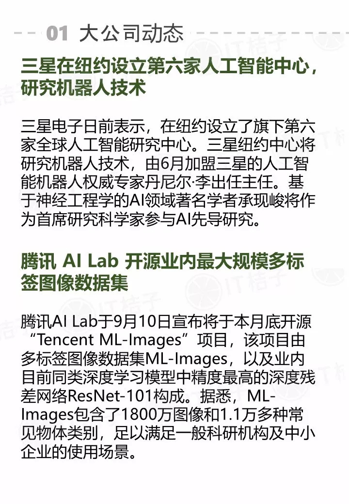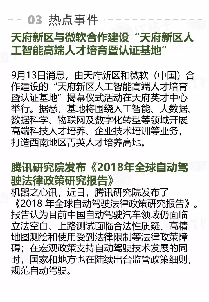 以下是 9 月 10 日至 9 月 16 日人工智能行业周报: