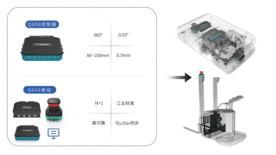 在立体仓库内,速感科技Q600系列导航定位控制器可帮助仓储物流车辆自动识别障碍物,减少运行路线,提高生产效率,缩短物流周期。