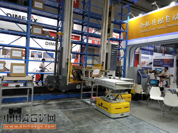 合肥井松科技有限公司在本次工博会上展出的视觉导航AGV、堆垛机结合自动化立体库,现场演绎智慧工厂的应用情景, 高速运转的堆垛机,忙碌穿梭的AGV与生产线输送设备的精准对接,吸引了大批参观者、专业观众及媒体。