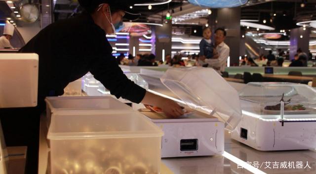 想吃海鲜的顾客还可以自己捞取中意的海鲜,然后由传送系统输送至厨房。在高峰期或客流量大的时间段,顾客可提前在APP预定,机械臂会将海鲜存放于恒温4℃的冷库货架中保存,以保证食材的新鲜程度。当消费者就位后,系统通过机械臂自动地取出送往加工,菜品完成后,由AGV传送至顾客手中,全程控制在30分钟之内,最快则只需10分钟,极大的缩短了等待时间。
