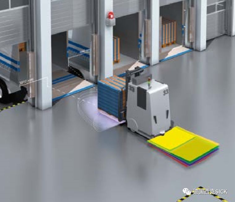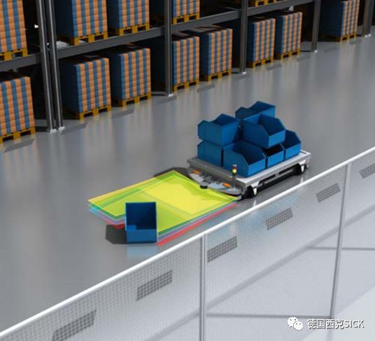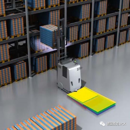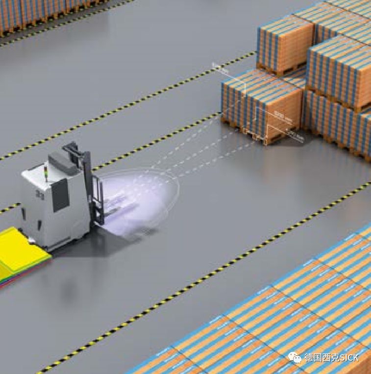 在高架仓库中,平稳的运行过程至关重要。空置的存储空间必须快速填充,且不能出现冲突。MRS1000能实现AGV运输叉车的精确定位,确保其在进入空置空间时不会出现碰撞,在倒车时,MRS1000还可通过多个扫描平面检测伸入平面内的物体,实现可靠的防撞保护。