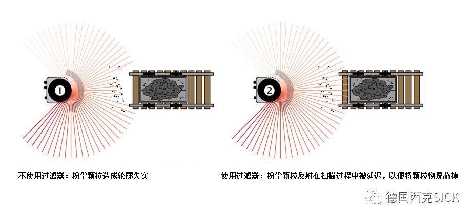 烟雾过滤器:借助烟雾过滤器,MRS1000可消除无用的近距离回波,这样能大幅降低在雾中近距离内出现误解发的概率。
