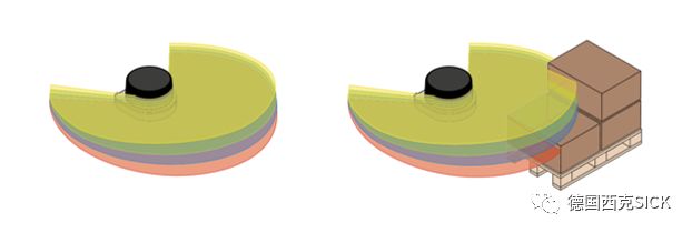 通过MRS1000提供的四个平面上的测量数据,能可靠检测货架缺口(举例而言)。在靠近和接收货盘期间,它可以实现运输叉车的相应定位,且无需停止AGV的运行。所记录的测量数据可用于构建物体的轮廓。