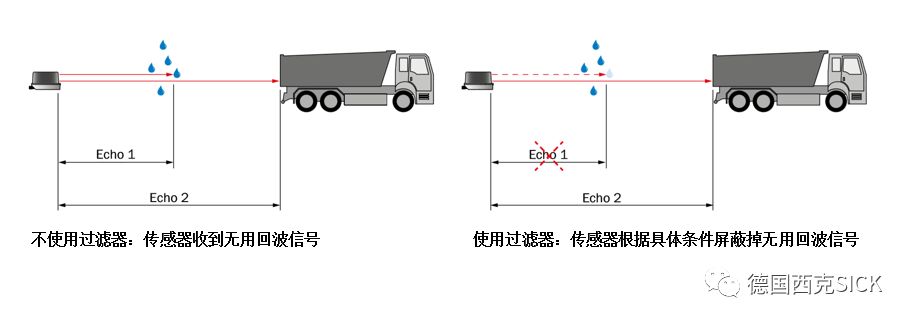 回波过滤器:借助回波过滤器,MRS1000可将无用数据和信号(比如由边缘、雨、粉尘、雪和其他环境条件引起的数据)筛除掉。客户还能设备输出第一个、最后一个还是全部三个回波信号。