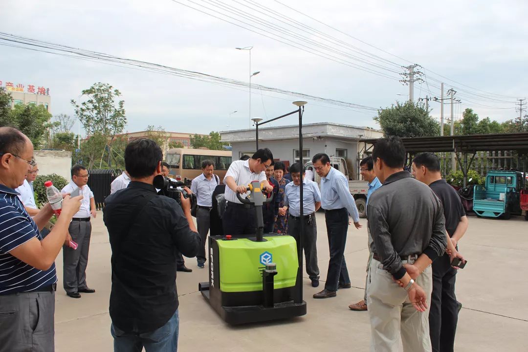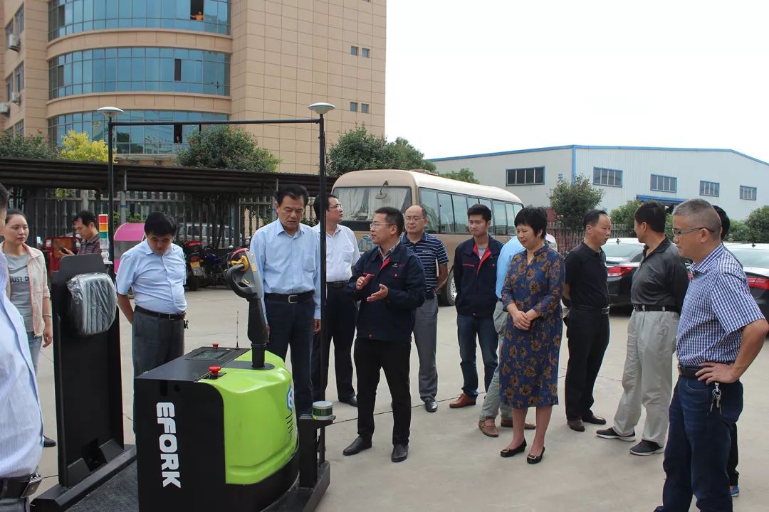 参观过程中,调研组一行在总经理项卫锋的陪同下还参观了电动叉车装配车间,实地了解公司叉车生产装配工艺流程、产品结构、现场管理等情况。在装配叉车成品前,总经理项卫锋向调研组一行介绍电动叉车的市场情况、零部件生产供应情况以及相关技术情况。