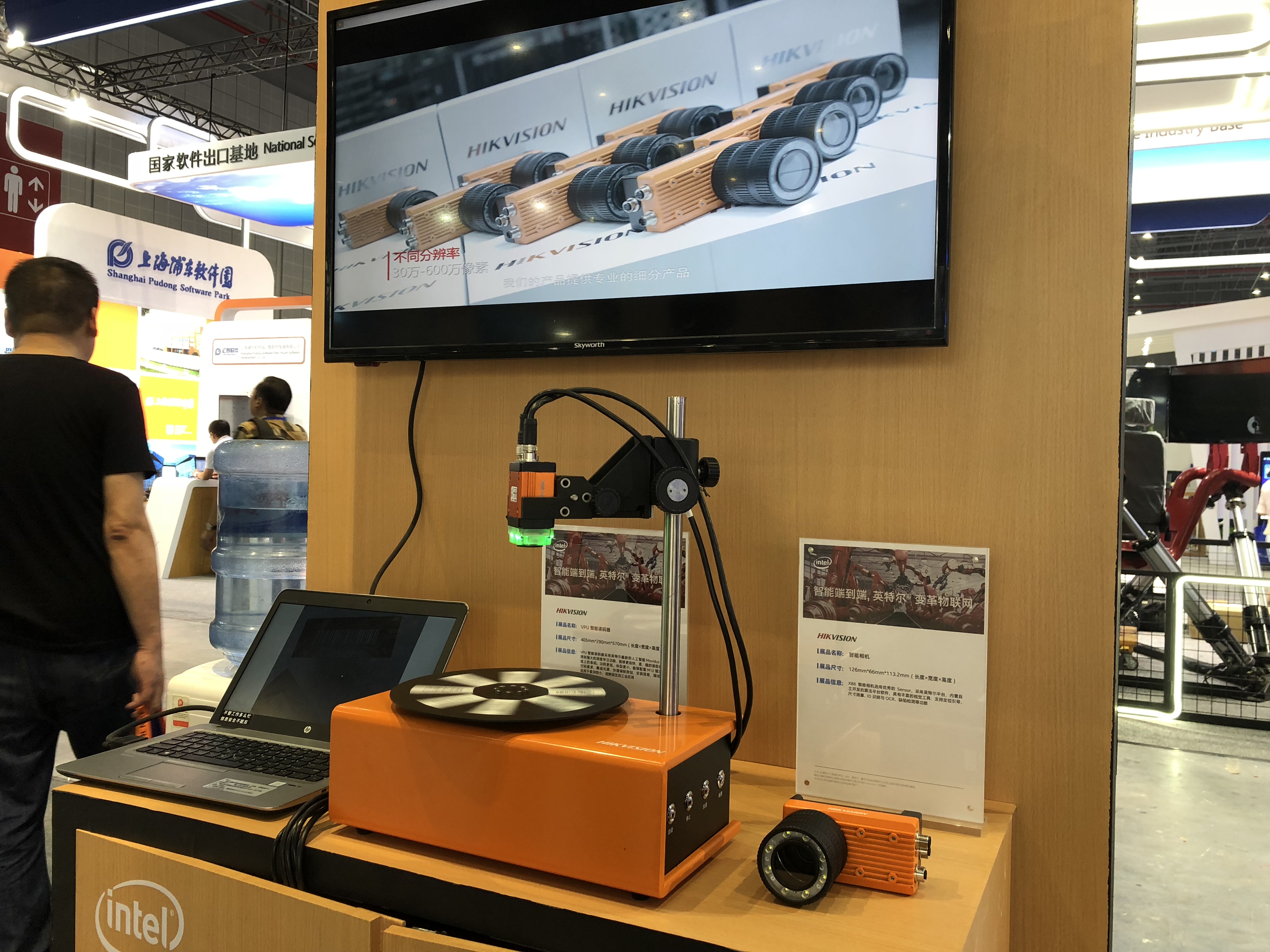 荣摘第20届中国国际工业博览会创新银奖的海康威视X86智能相机选用优秀的芯片及海康威视机器视觉算法平台,现场展示了其同时实现高速模板匹配、尺寸测量、OCR光学字符识别等功能。此外,VPU视觉传感器配合展示(产品型号代码)检测有无的功能。