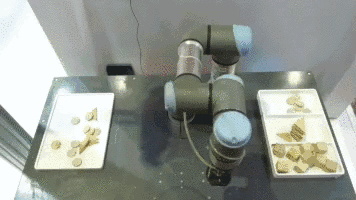 DLP立体相机搭载自主研发的3D定位算法、软件,与机械臂“眼手联动”,实现对不同形状、随机堆叠的积木的3D定位、精准分拣动作。