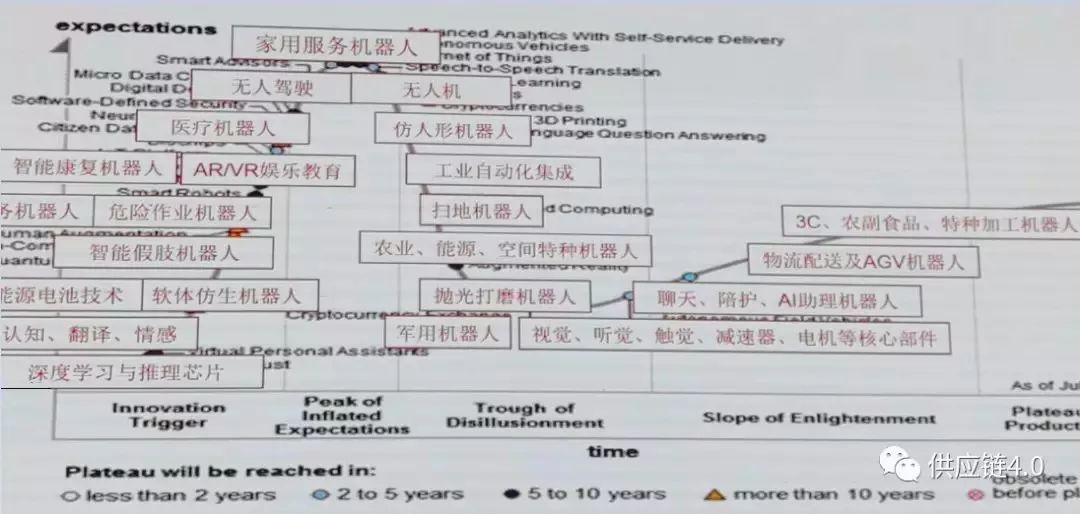 图5:不同类型/行业的机器人处于不同的发展阶段。来源:Gartner公司