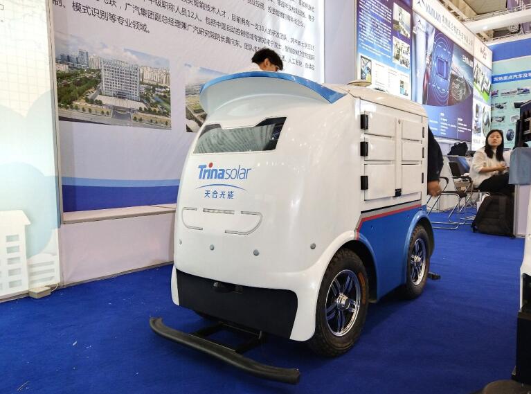 天合光能智能无人物流车,可自主完成快递的运送任务,并提供短信提醒,密码取件和拍照留存等服务,其自定义快递柜尺寸及规格可满足多种需求。
