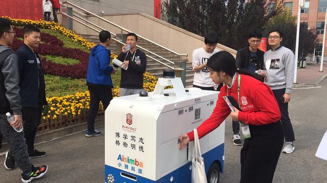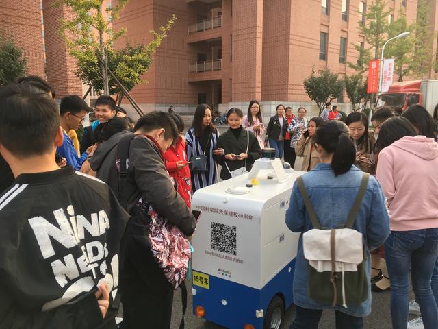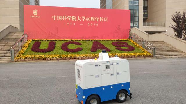 10月14日,中国科学院40周年校庆在北京雁西湖校区隆重举行。一辆与中国科学院蓝、白色校徽配色一致的无人配送车穿行在中国科学院雁西湖校区,为参加校庆的校友、嘉宾和师生们提供饮用水、零食、书册及校庆纪念品的配送服务。这辆灵动的"小狮号"无人配送车,是中国科学院的创业团队——武汉小狮科技有限公司献礼母校40周年庆典的礼物,并从即日起长期为科学院师生提供便捷的无人配送服务。