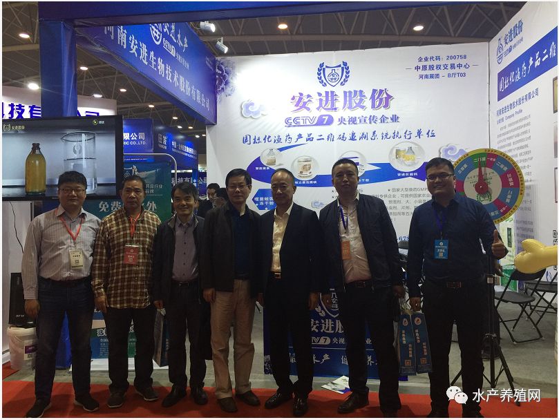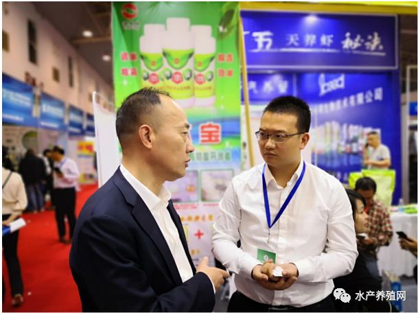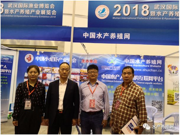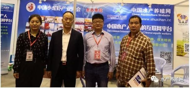 中国渔业协会常务副秘书长彭斌辉、副秘书长任宏伟(上图左一)、中国渔业协会水产动保分会秘书长王树平(右二)莅临中国水产养殖网展位指导。