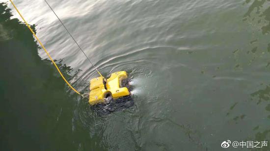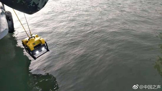 [武警重庆总队船艇支队动用水下机器人搜寻坠江人员]为准确摸清坠江车辆在水下的具体位置,武警重庆总队船艇支队动用水下机器人进行不间断搜寻,确保救援准确高效。(央广记者 刘湛、陈鹏、赵聪聪,通讯员 谢江、彭荣国,图片 彭荣国、杨超 摄)