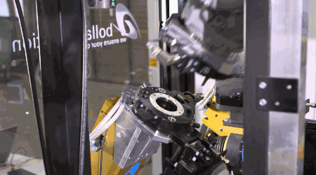 工作过程中,通过将 KUKA 铸造机器人和负荷能力为 750 kg 的三轴式定位装置完美结合,确保设备运行灵活自如,可以从任意一面给不同的铸件去毛刺。这可以显著提高在最紧凑空间内修整的节拍时间。