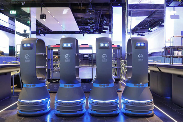 据数据统计显示,海底捞松江店花生传菜机器人送餐平均值达到了,140次每天,每次2个托盘,一天可以传送280个托盘,传菜数量超越人工。