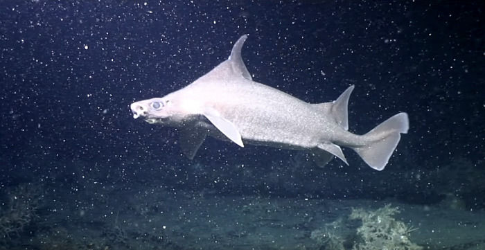 镜头也记录下了罕见的叉牙鱼(Sailfin Roughshark)