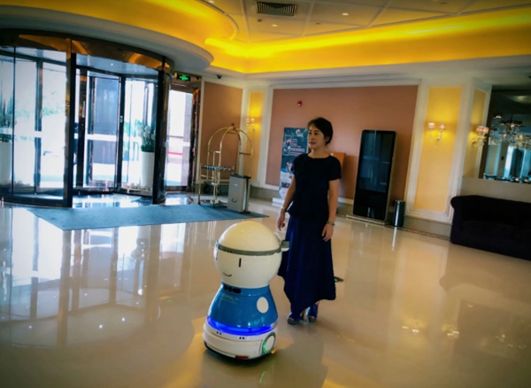 花生酒店机器人主要负责酒店客房物品配送,机器人与电梯、电话互联,电梯接收到信号后,到达一楼后开门,并反馈信号给酒店机器人;酒店机器人接收到信号后,进入电梯,告知所前往楼层,电梯接收到信号后关门,前往指定楼层;电梯到达指定楼层后开门,并告知酒店机器人,酒店机器人出电梯,发送信号给电梯,电梯关门;自主乘坐电梯这一进步,让机器人可以像人一样,方便、准确、安全地乘坐电梯,而不会妨碍到同乘人员。还可以跨楼层提供客房送货服务,打造智慧酒店平台。