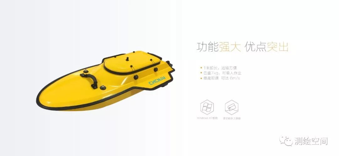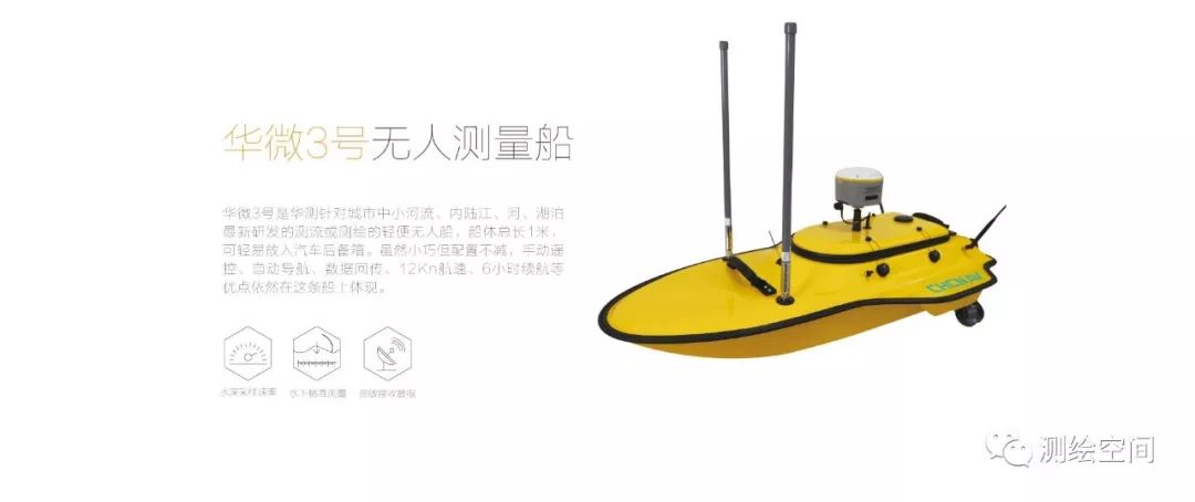 华微3号是华测自主研发的最新一款适合城市中小型河流、内陆江、河、湖泊测流或测绘的超轻便型无人船。总长1米,自重只有7Kg的船体使得运输更加方便,可轻易放入汽车后备箱,单人即可作业,大大节省了人力。6m/s的最大速度,3m/s的自动导航速度,手动自动两种模式切换,根据不同的工作环境,可以选择合适的操作方式。10cm的超浅吃水,专为测绘人设计的无人船!