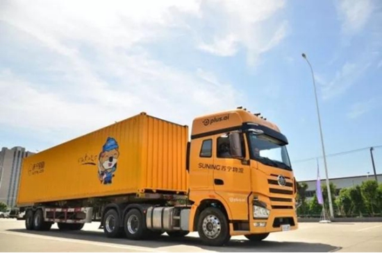 2018年5月,苏宁无人重卡"行龙一号"在上海奉贤完成首测。
