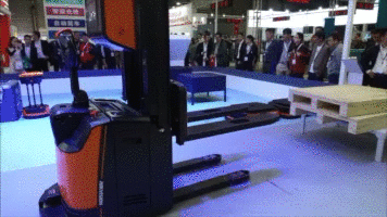 海康威视叉车系列机器人MR-F5L-SS314A识别无序堆垛托盘的位置,实时调整机器人位姿和运行轨迹,实现准确叉取。