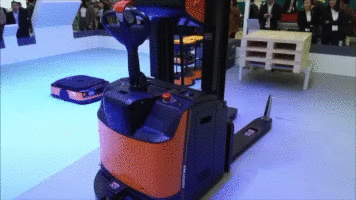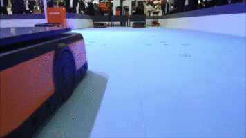 同时出演的,还有两款海康威视叉车系列机器人,MR-F3L-SS110A华丽演绎360度全方位运行。