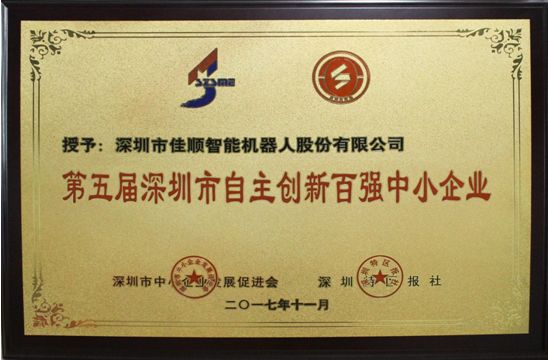 深圳市佳顺智能机器人股份有限公司荣获百强企业称号