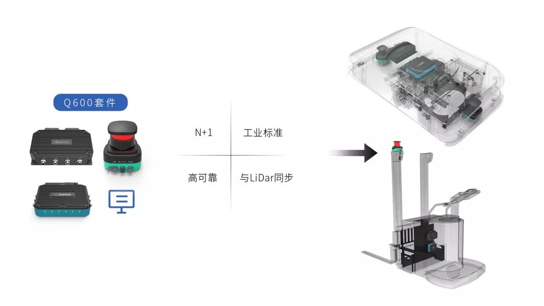 目前中国AGV产业关键零部件仍依赖进口品牌,且国外进口的同类定位导航控制器与调度技术价格高昂,这不仅使得国内厂商的生产成本压力大,也成为制约中国AGV产业的主要瓶颈。针对此痛点,速感科技依托自主研发SLAM定位导航算法,基于前期行业用户基础与多家上下游厂商的合作与封闭研发,于近日正式推出一站式叉车AGV改造方案——IQ工业级定位导航与调度系统控制组件。