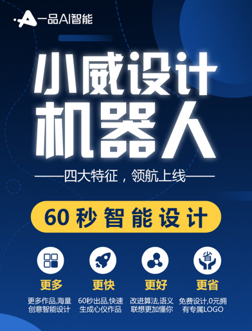 小威设计机器人(www.eplogo.cn)是一款在线LOGO智能设计工具,由智汇一品集团旗下“一品AI智能”研发。它集合了众多人类优秀设计师的智慧,可24小时不知疲倦地开展设计工作,使用者在操作页面上输入企业属性和品牌调性相关的信息,然后小威设计机器人就会启动其体内强大的语义联想和图形分析功能,精准匹配用户需求和喜好,智能生成32套LOGO方案,前后总共仅需花费一分钟左右的时间。除LOGO设计外,小威设计机器人还提供在线智能商标查询和注册功能。