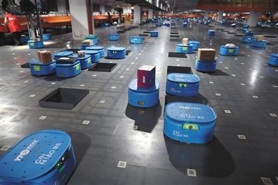 在圆通萧山分拨中心内,菜鸟与圆通速递近期也联合启用了超级机器人分拨中心。高峰期内,2000平方米的场地内,350台菜鸟“小蓝人”昼夜作业,每天可分拣超过50万个包裹,机器人三天的行驶里程足以绕地球赤道一圈。
