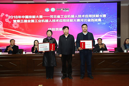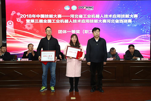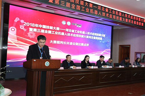 11月15日至18日,2018年中国技能大赛——河北省工业机器人技术应用技能大赛暨第三届全国工业机器人技术应用技能大赛河北省选拔赛在河北化工医药职业技术学院举行。此次大赛是由河北省工业和信息化厅、河北省人力资源和社会保障厅、河北省教育厅共同主办的省级一类比赛,由河北化工医药职业技术学院与河北省中小企业发展促进中心承办,中德栋梁教育科技集团协办。大赛由理论考试和实际操作考核两部分组成,分设学生组和职工组,共有来自省内10个地市、29个单位、36支队伍的111名选手参赛。