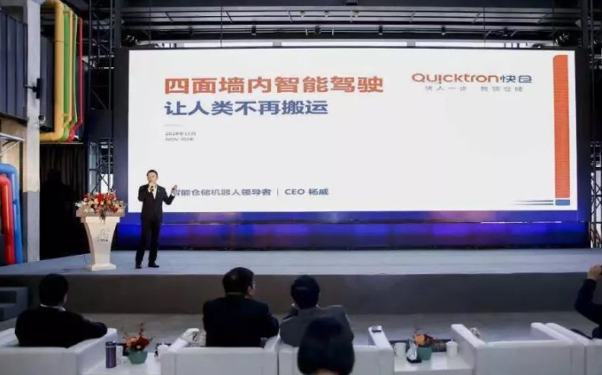 快仓CEO杨威作为重要嘉宾,受邀参加了宣传会。并分享了《四面墙内的智能驾驶-让人类不再搬运》主题演讲。