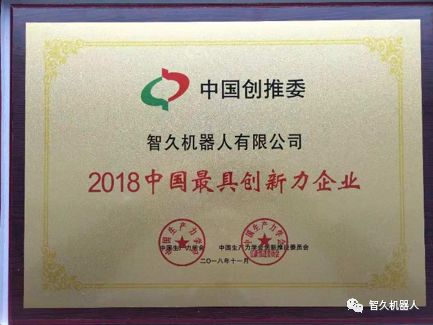2018年11月25日,智久机器人在“中国企业创新论坛2018年年会暨创新型企业座谈交流会”上获得2018年中国最具创新力企业奖。