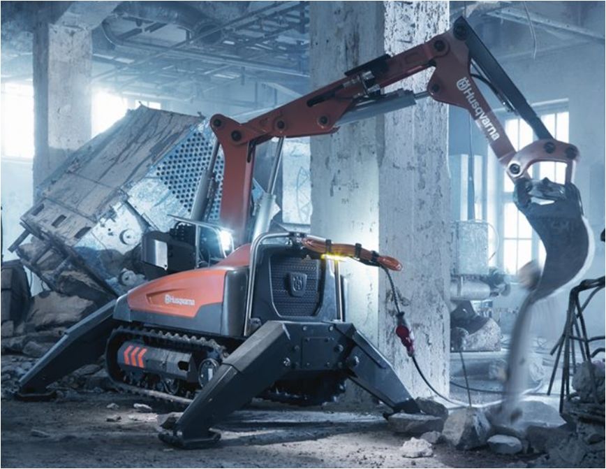 工人可以远程操作Husqvarna DXR拆迁机器人,而不需要进入危险的拆迁场地中